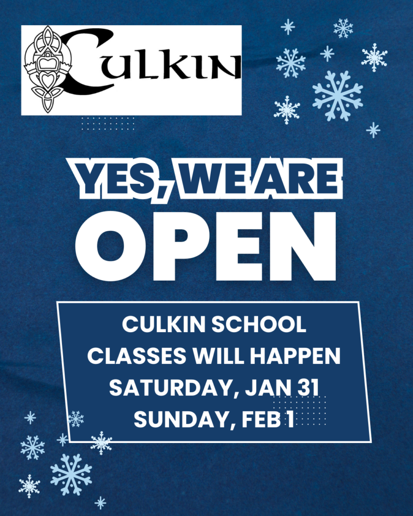 Does Santa need to bring some Culkin gear to your family this year? We can make that happen! Visit our Culkin School Shopify Store! We do not ship items, but deliver to our classes. If you would like to order but are not able to go to one of our classes, please contact denise@culkinschool.com to coordinate.